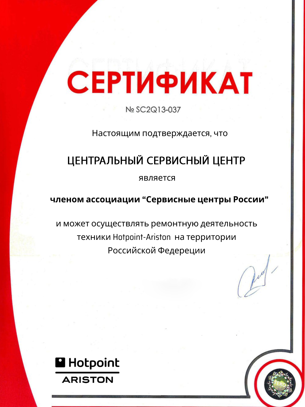 Наш сервисный центр имеет все необходимые сертификаты и лицензии на проведение ремонта бытовой техники Hotpoint-Ariston . Мы работаем только с квалифицированными специалистами, которые прошли обучение и имеют большой опыт в данной области. Наши мастера регулярно проходят курсы повышения квалификации, чтобы быть в курсе последних технологий и методов ремонта.